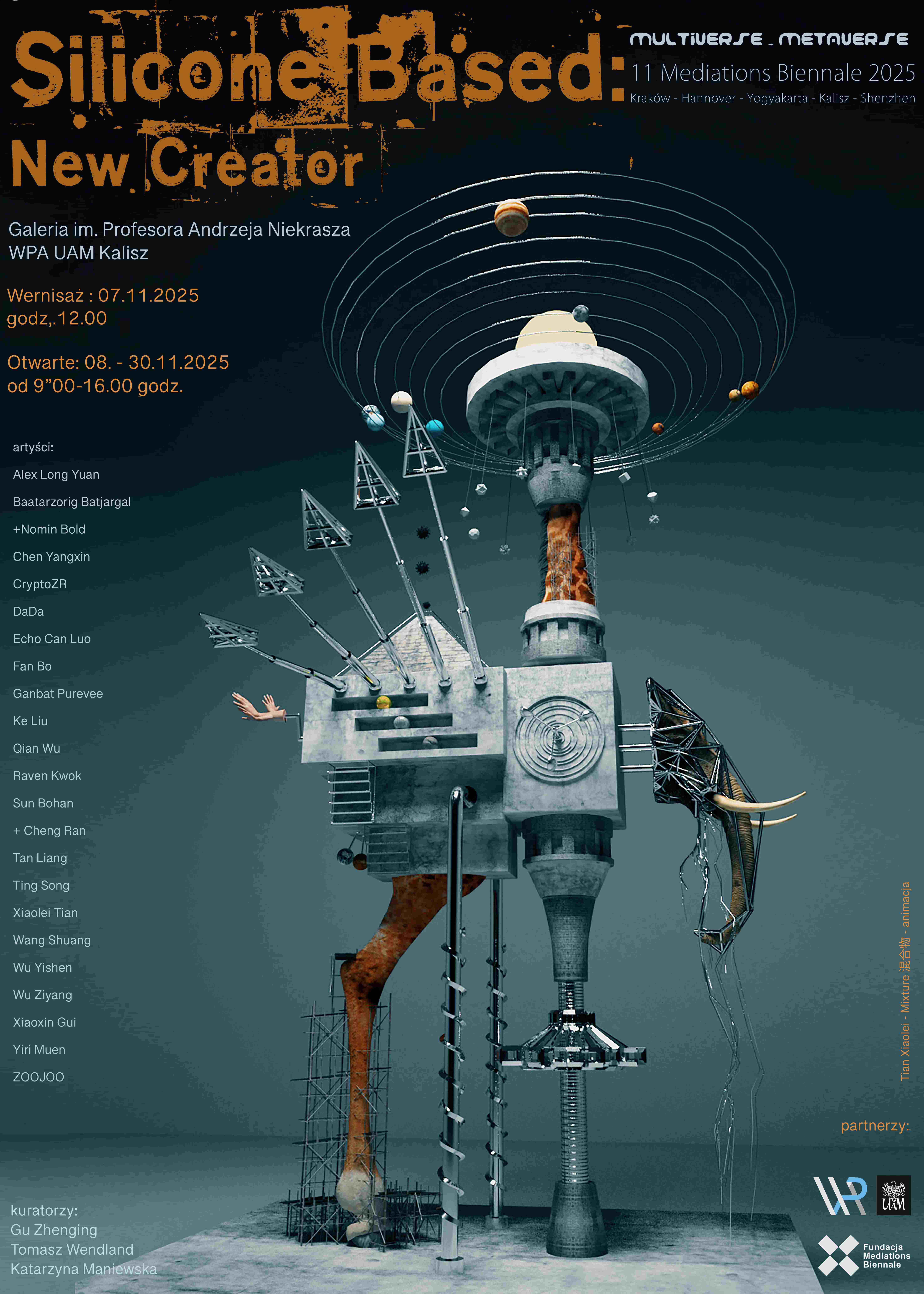 Wystawa prezentuje 23 współczesnych artystów z Azji, odnoszących się głównie do najnowszych przemian cywilizacyjnych i technologicznych mających globalne konsekwencje. Wkraczamy w nową erę, w której granica między tym, co fizyczne, a tym, co cyfrowe, ulega zatarciu. Eksplozja produktywności napędzana przez rozbudowane modele sztucznej inteligencji, w połączeniu z nowymi relacjami produkcyjnymi ukształtowanymi przez Web 3.0, wprawia ludzkość w sejsmiczny przełom w poznaniu. Nadeszła osobliwość. Nowa cywilizacja podziwu – w której ludzie i maszyny współistnieją, gdzie węgiel i krzem stanowią jedność – jest już w naszych rękach. Jednocześnie artyści pracujący ze sztuczną inteligencją i mediami cyfrowymi przekraczają granice twórcze i kwestionują konwencjonalne struktury poznawcze. Ich prace nie tylko koncentrują się na istocie tej rewolucji poznawczej przyniesionej przez osobliwość i ją analizują, ale także dają świadectwo i przewidują radykalną transformację społeczeństwa ludzkiego – od cywilizacji opartej na węglu do cywilizacji opartej na krzemie – oraz jej dalekosiężny wpływ.